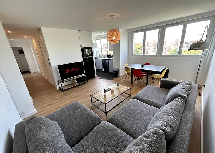 Les logements T3 Moderne au centre-ville dispose d'une cuisine entièrement équipée, ainsi que de conforts tels qu'une climatisation et un lave-linge.